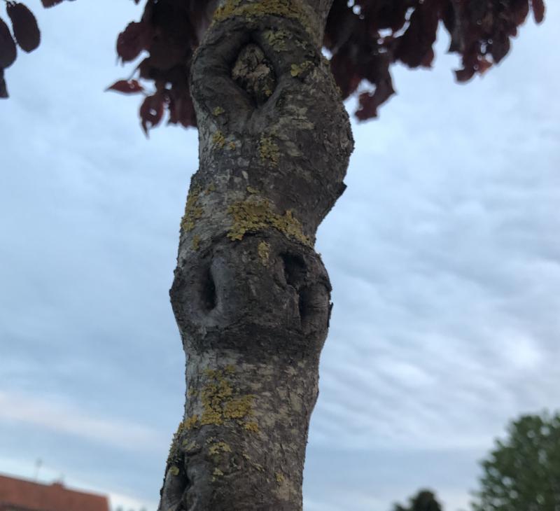 Leider ist der Stamm unterhalb der Krone sehr unschön. So wellig mit Vertiefungen von alten Ästen.