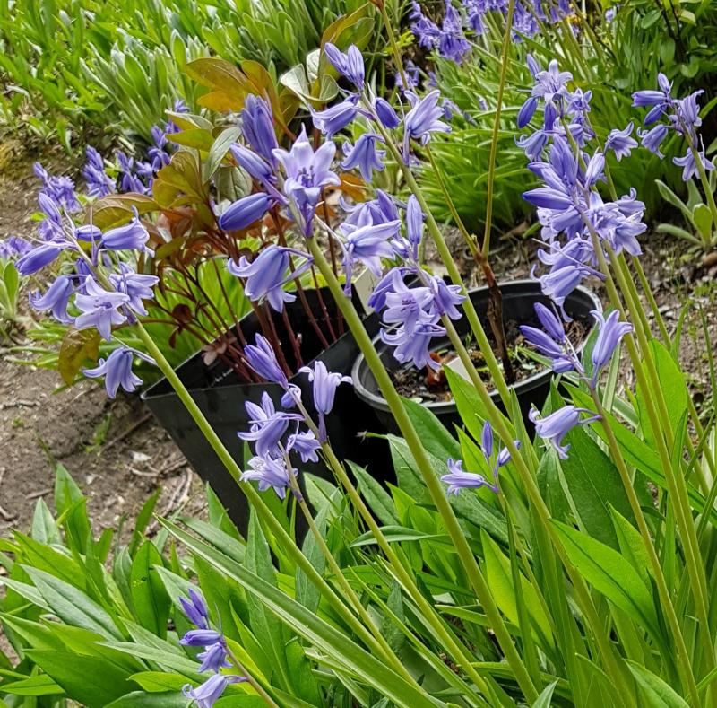 Oder für Hasenglöckchen (Hyacinthoides), die gehen bei mir in voller Sonne und ärmstem trockenen Boden gut. Vergißmeinnicht sind dir vermutlich zu hell. Dunkelblaue Ackeleien (Aquilegia vulgaris) wären auch eine Option, aber ich bin mir nicht sicher, ob die jetzt schon blühen. Wäre aber von Laub und Blütenform ein schöner Kontrast.