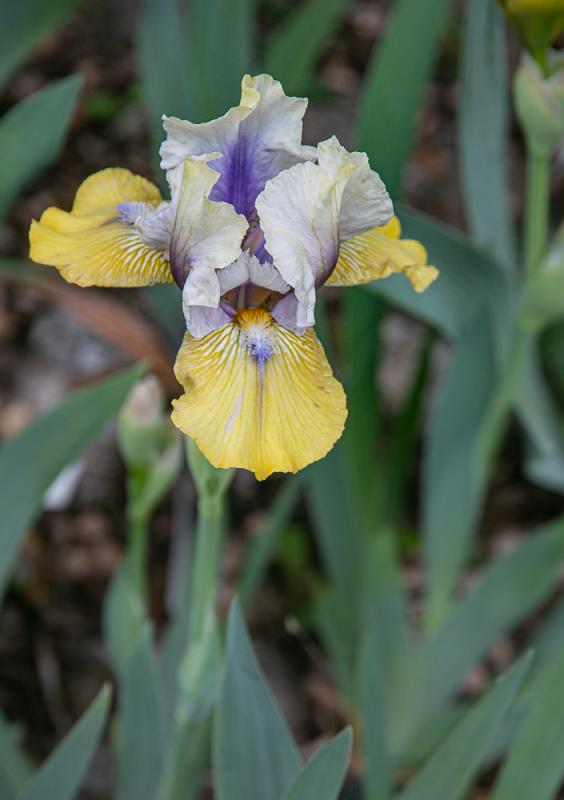 Iris squalens, vermutlich natürlich enstandene Hybride aus pallida und variegata, hellgelber Dom und weinrote Hängeblätter