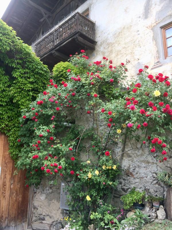 Und am Ende des Weges steht ein altes Bauernhaus mit Kletterrosen: