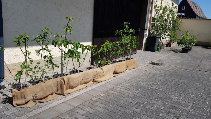 Hier die anderen Topf Feigen vor dem Tomatenhaus.