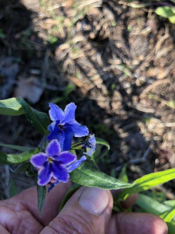 Das zweite vermutlich der Purpurblaue Steinsame (Lithospermum purpurocaeruleum). Kann nach etlichen Jahren durch seine Wurzelausläufer bedrückend für seine Nachbarn werden.