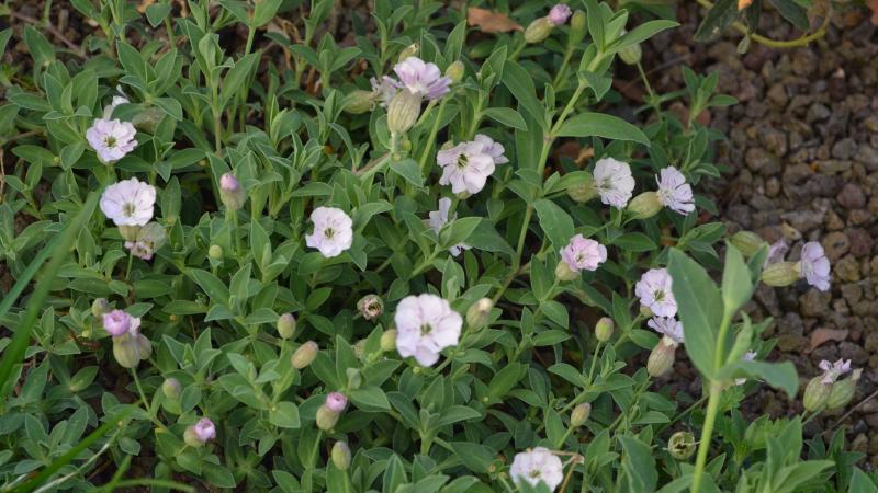 Silene uniflora 'Compacta' blüht schon schön, wurde nur im Sommer etwas zu sehr von dem Bleiwurz in der Mitte beschattet. Bin mir noch nicht sicher, ob der bleiben darf, hatte kaum Blüten.