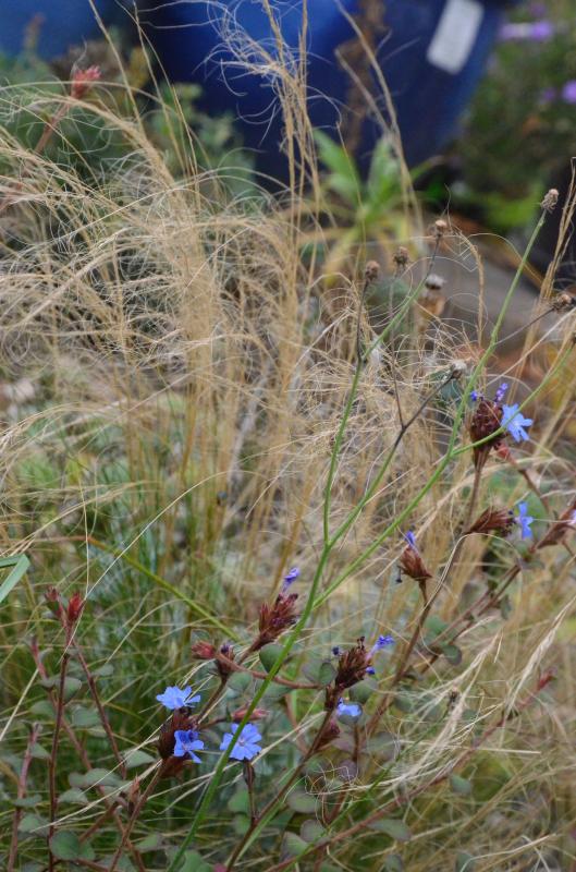 Ceratostigma griffithi habe ich schon länger, war damit eigentlich immer zufrieden. Aber auch der ist in diesem Jahr sehr erst extrem spät zur Blüte gekommen und hatte weniger Blüten als sonst.