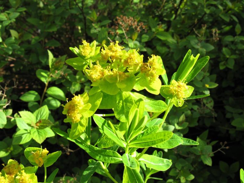 Aber was mag es sein? Euphorbia palustris oder einer ihrer Sorten ist es vermutlich nicht. Eine andere Blatttextur, wesentlich dünnere Triebe und eine Blütezeit, die mehr als zwei Wochen später beginnt als bei meinen Sumpfwolfsmilchtypen im Garten.