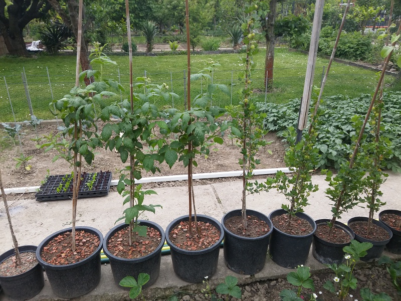 Ich war überrascht, in der Gärtnerei viele große Topfobstbäume zu sehen, scheint ein Trend zu werden.