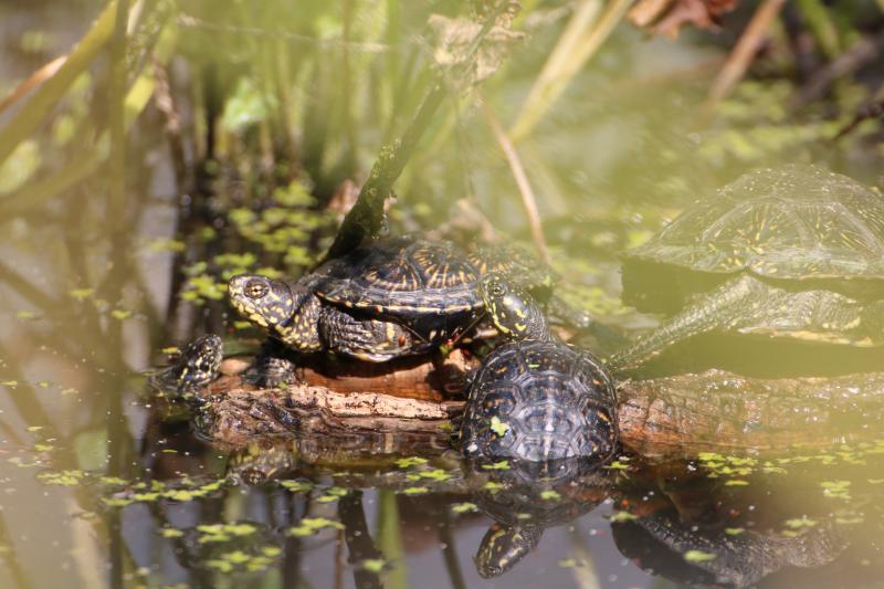 Schildkröten sind Europäische Sumpfschildkröten ( kommen auch hier noch in der Gegend vor!), bleiben also das ganze Jahr im Teich.