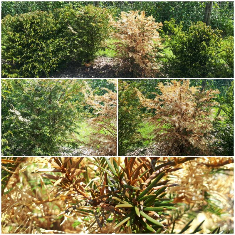 Was hat meine Eibe? Zuerst habe ich an einen Trockenschaden geglaubt, dann an eine Wühlmaus. Nun fängt die benachbarte Eibe auch an...