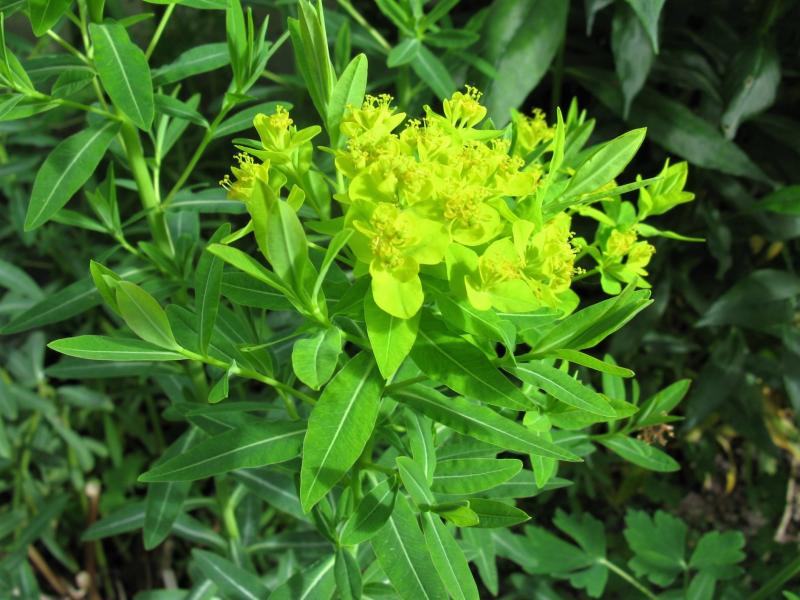 Aber was mag es sein? Euphorbia palustris oder einer ihrer Sorten ist es vermutlich nicht. Eine andere Blatttextur, wesentlich dünnere Triebe und eine Blütezeit, die mehr als zwei Wochen später beginnt als bei meinen Sumpfwolfsmilchtypen im Garten.