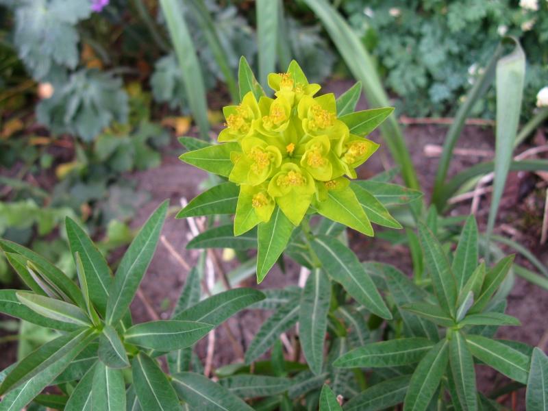 Immerhin bekomme ich inzwischen eine Ahnung, wie man die europäische Art Euphorbia palustris von den asiatischen Schwestern E. wallichii, Euphorbia schillingii und E. cornigera unterscheiden kann. Dies sind u. a. wesentlich kräftigere Stängel, eher graugrüne, gewellte Blätter ohne ausgeprägtem weißen Mittelstrich und/oder rote Blattränder sowie eine offenbar deutlich frühere Blütezeit.