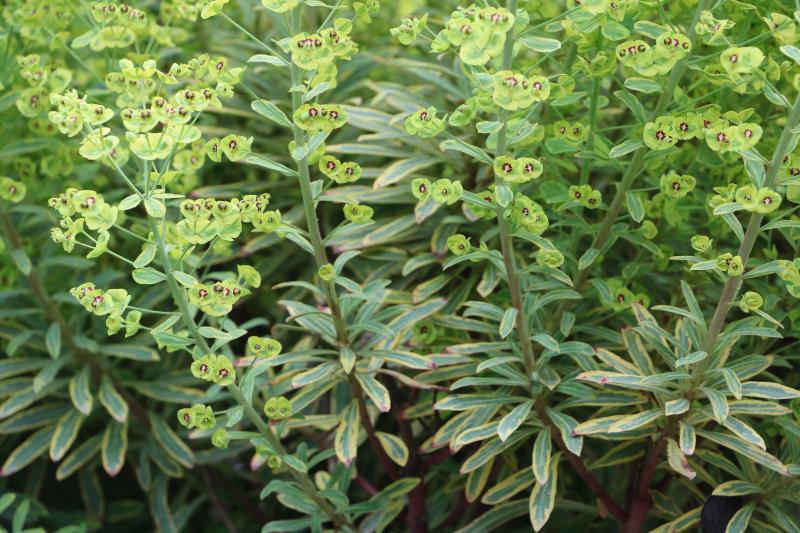 Aber was mag es sein? Euphorbia palustris oder einer ihrer Sorten ist es vermutlich nicht. Eine andere Blatttextur, wesentlich dünnere Triebe und eine Blütezeit, die mehr als zwei Wochen später beginnt als bei meinen Sumpfwolfsmilchtypen im Garten.