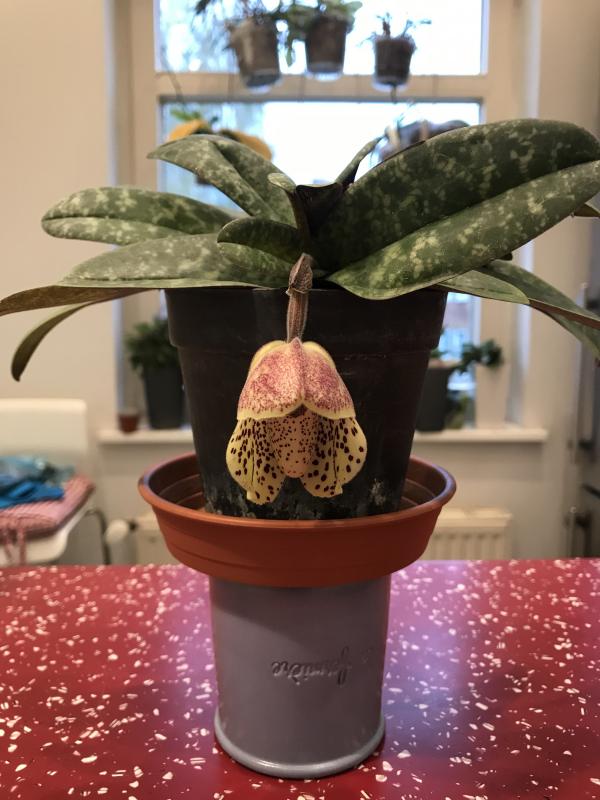 Ich hab von einem Freund Ableger seiner Psychopsis, vermutlich kahlii, bekommen - leider war ich nicht beim Austopfen und Teilen dabei, jedenfalls hab ich jetzt ein Teilstück mit Neutrieb sowie Blütenstängel mit Knospe und ein Teilstück ohne Neutrieb, aber mit Blütenstängel samt Knospe.