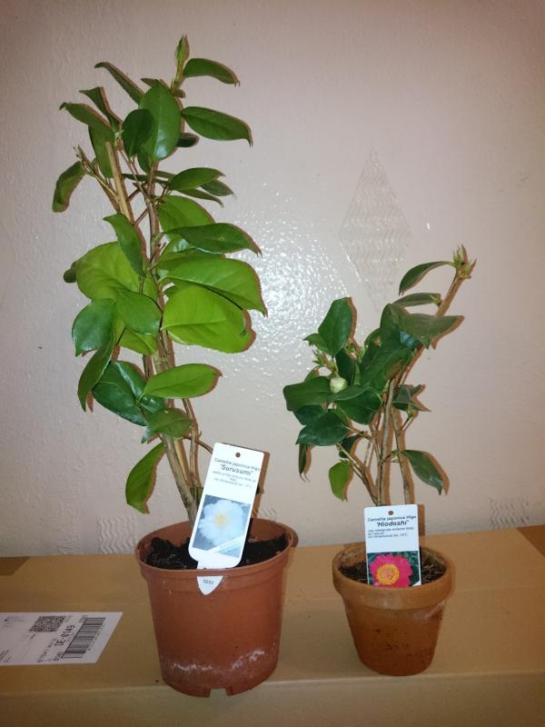 ...und so sieht die Botanik aus: Die linke ist ca. 50cm und die rechte Kamelie ist 30cm hoch