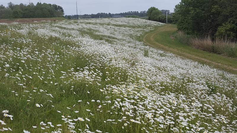 Ein paar Eindrücke von heute vom Weserdeich und umzu : der Deich im weißen Frühlingskleid, Wiesenmargeriten