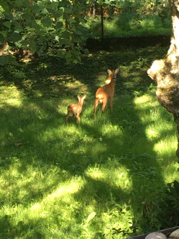 Immerhin hilft das Reh jetzt im Garten mit. Brav immer hübsch die Sandbrombeeren abschneiden. Nur das mit dem Bodeneben muss ich dem Reh noch erklären.