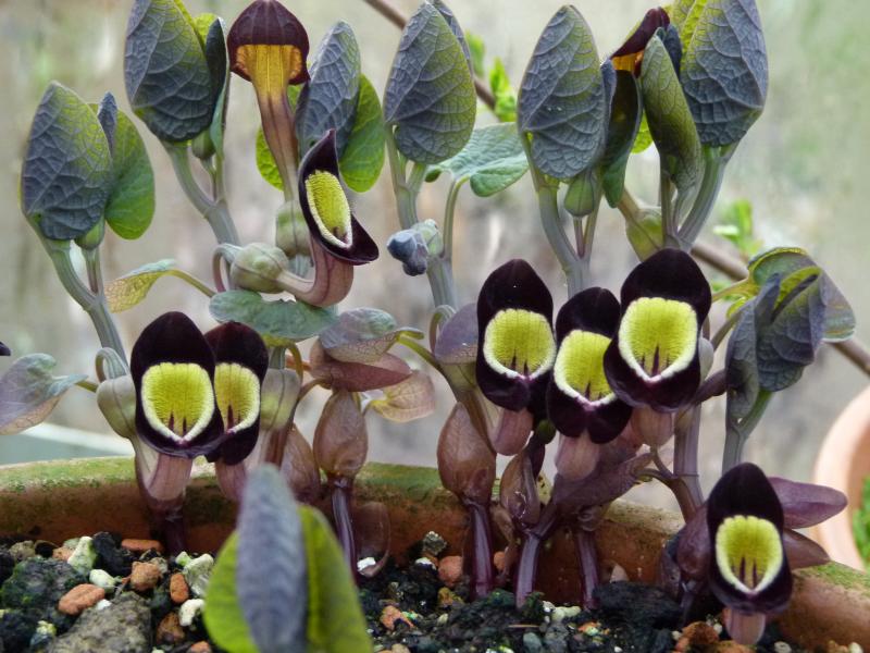 Heute habe ich einen Topf entdeckt, den ich draußen im Garten vergessen hatte: auf dem Schild stand Aristolochia steupii. Der Winter war zwar mild, aber das Töpfchen hat trotzdem leichte Fröste abbekommen, vielleicht so -5 oder -6 Grad. Ich habe es neugierig ausgeschüttet: alle unterirdisch ausgetriebenen Sprosse waren noch intakt. Die frischen Sprosse halten also mehr aus, als ich dachte. Vielleicht wage ich doch mal einen Auspflanzversuch, bei sehr tiefer Pflanzung.