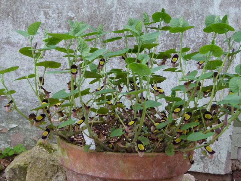 Ein Teilstück steht direkt daneben in gewachsener Erde (die gleiche Erde, die ich für den Topf verwende) und unter gleichen Bedingungen (Schatten, nur eine Stunde Halbschatten, kühl): Sie verliert einen Teil der Blätter, die neuen Blätter sind viel kleiner, und wie bei allen Teilstücken im Garten ist die Blüte ärmlicher als bei den getopften Pflanzen. Auch die Schnecken fressen zunächst die "Erdpflanzen" an. Abgestorben ist bisher aber keine Pflanze!