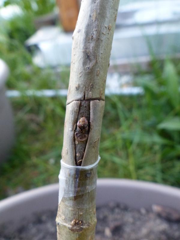 Den Lacbalsam hab ich erst raufgemacht, nachdem ich den Okulationsverschluss runtergenommen hab. War trotzdem ein Fehler, weils natürlich ausgetrocknet ist.. ich Depp :P War aber auch einfacn nicht die richtige Veredelungsmethode, die Chips in T-Schnitte zu stecken.