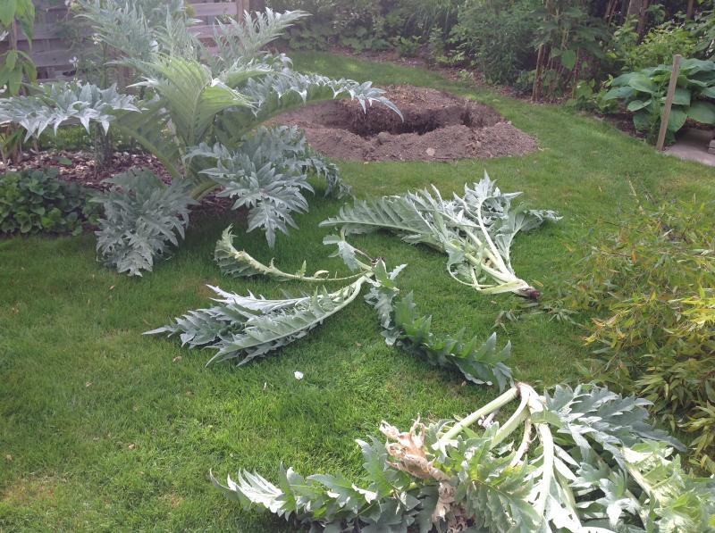 Meine Cardy sahen letzte Woche so aus :o. Wer oder Was hat da wohl gewütet? Ein Unwetter gab es nicht, ein Mensch dürfte wohl auch nicht über den Zaun (mit Stacheldraht) gestiegen und durch gerannt sein. Es müsste aber auch schon ein großes Tier gewesen sein, das müsste auch irgendwie hinein und wieder hinaus gekommen sein. Ein Storch? Kommt mir ebenfalls unwahrscheinlich vor. Was denkt ihr?