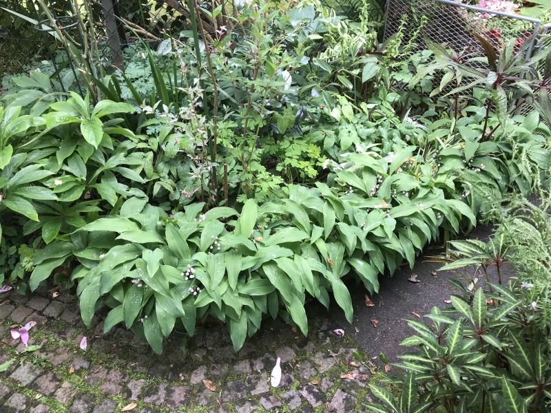 Rosa Maiglöckchen als eine Art Hecke, optisch nicht sehr auffällig aber der Duft ist deutlich wahrnehmbar. :D