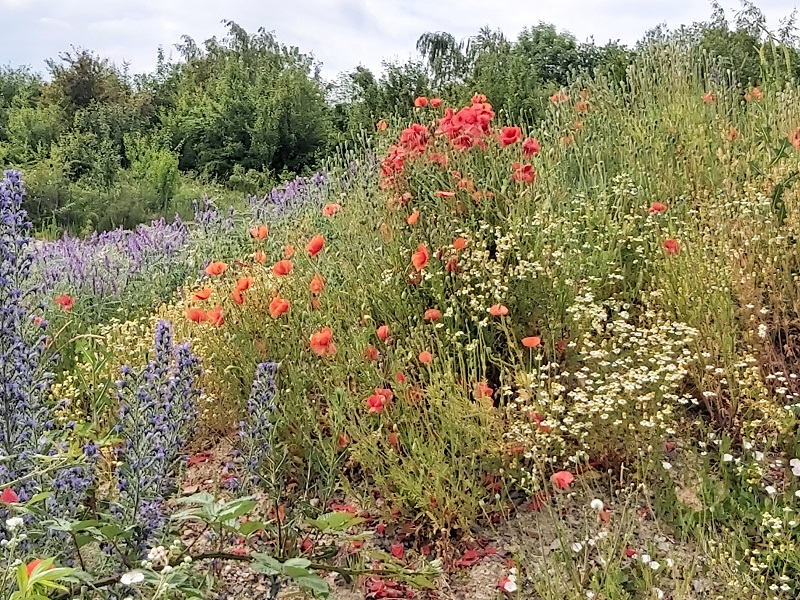 Bei mir um die Ecke wurde im letzten Jahr ein Grundstück planiert und der Aushub am Rand aufgeschüttet. Aktuell explodiert dort die Natur. So ähnlich wie auf den Fotos sieht es dort großflächig aus und es summt und brummt wie verrückt.