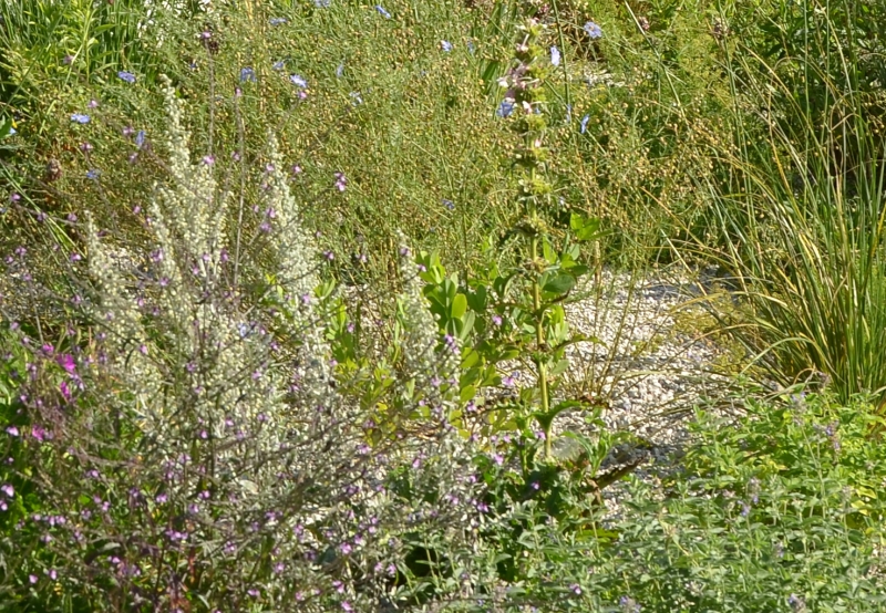Es kann ein wenig dauern mit denen, aber es lohnt sich. Ich hatte sie schon öfter probiert und immer verloren. Vor fünf Jahren im Herbst habe ich dann 3 kleine Pflanzen aus 7er-Töpfen in das neue Schotterbeet gepflanzt (Ende September). Ich habe jetzt erst Ende Juli des darauffolgenden Jahres ein Bild gefunden, wo man sie überhaupt erkennen kann. Ich habe einen Ausschnitt gewählt, das Grüne eher mittig sind sie.