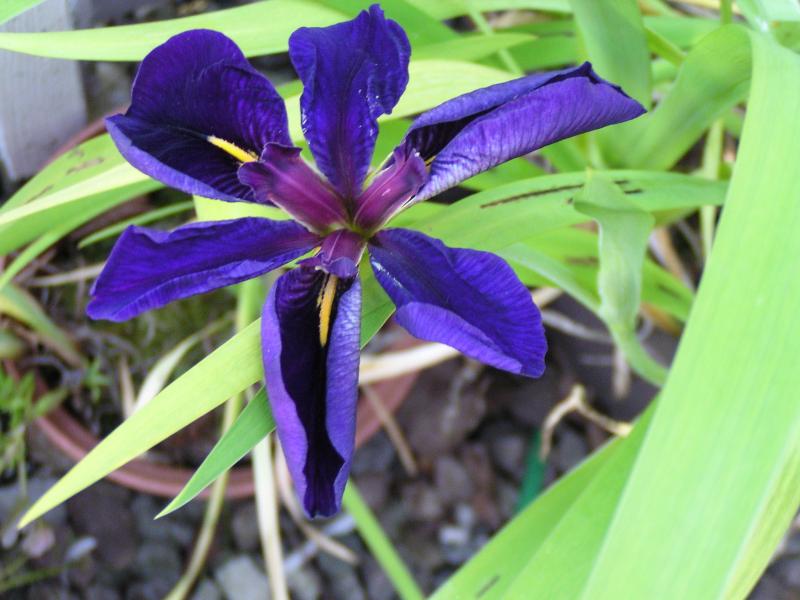 Heute ist die erste Blüte bei meiner Iris aufgegangen, also als Iris sibirica erstanden, denke, dass es auch I. Lousiana 'Black Gamecock' ist. In Wirklichkeit ist die Farbe etwas dunkler.