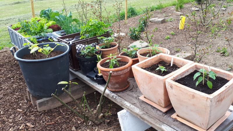 Am Tomatenhaus ist kein Wasseranschluss, es müsste evtl. mit Wasser gefüllten Mörtelkübeln funktionieren.