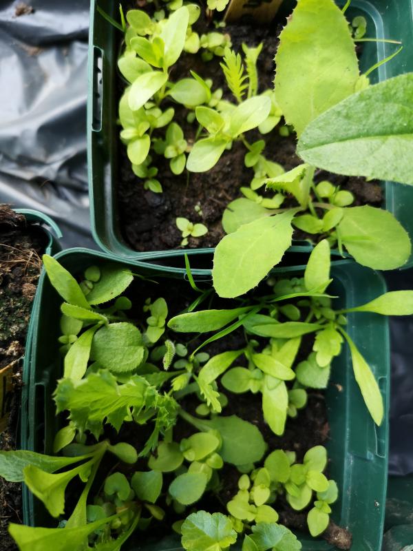 Es können durchaus noch einige winzige Alchemilla drin sein, einige Keimblätter sehen verdächtig aus.