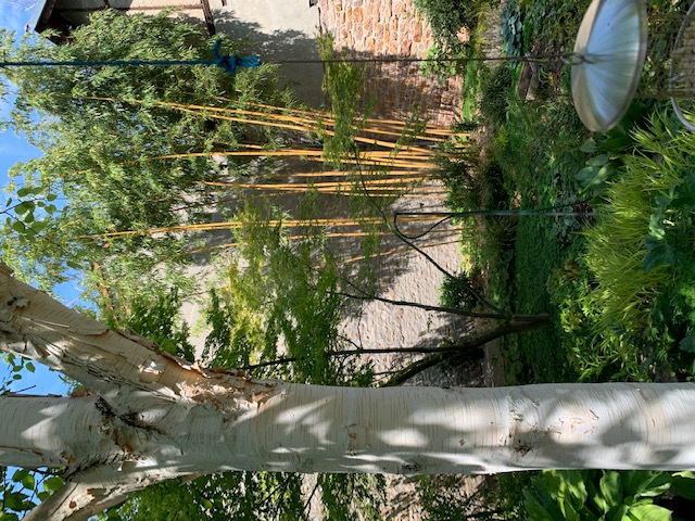 Gestern gab es wieder einen Gartenbesuch. Im Vorgarten wurde eine große Kiefer gerodet, so dass der Blick auf den Bambus jetzt unverstellt ist. Der Bambus ist riesig und muss im Zaum gehalten werden.