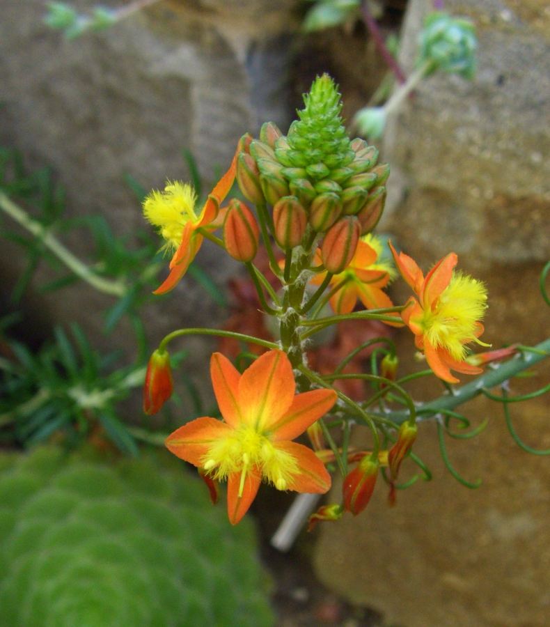 Frühherbstlich flammende Farben trägt auch Bulbine frutescens bei, ...