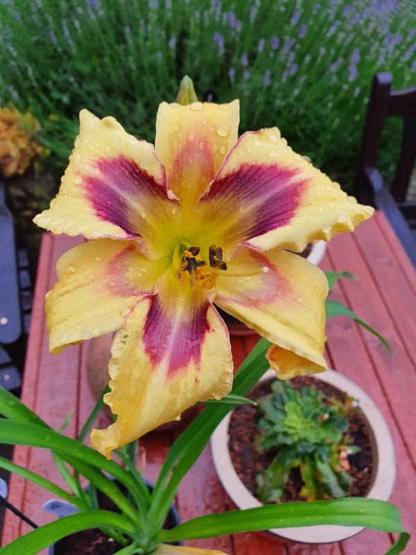 Nachdem Lotus Position und Applique ihre erste Blüte hatten ( LP eher gequält, und Applique ergab nur gruselige Bilder wegen falscher rot Wiedergabe) heute nun nach endlich Abkühlung und Regen um 6 Uhr heute morgen eine wie ich finde perfekte allererste Blüte bei mir von Viva Pinata.