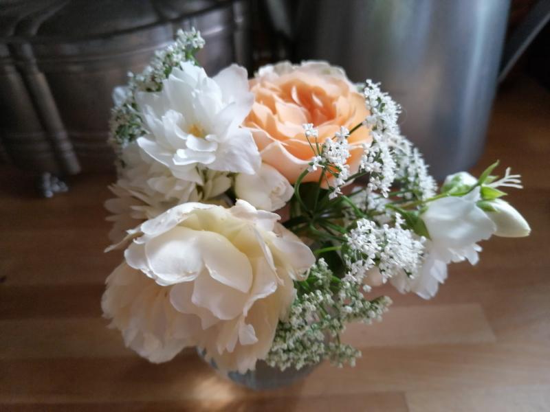 Da nach dem morgendlichen Regen (Wisst Ihr noch was das ist? ;)) 2 Blüten im "Dreck" lagen, stelle ich zu Mittag ein kleines Sträußchen auf den Tisch. :)