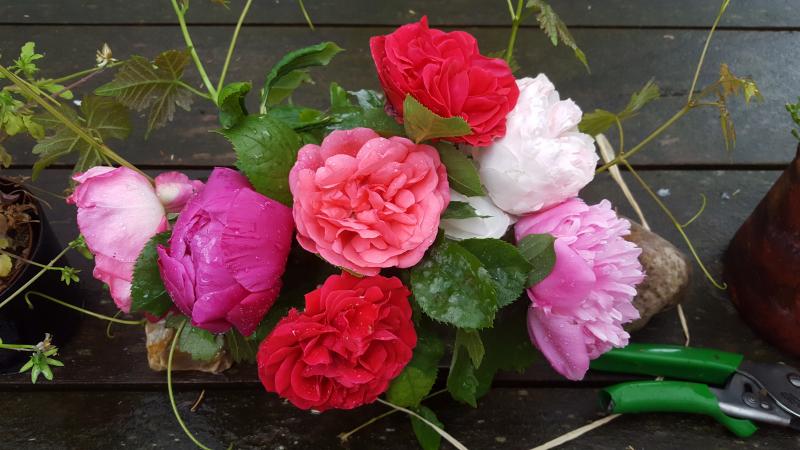 Fenster auf, Hand mit Schere 'raus, Rosen in den kleinen Vasen. ;)