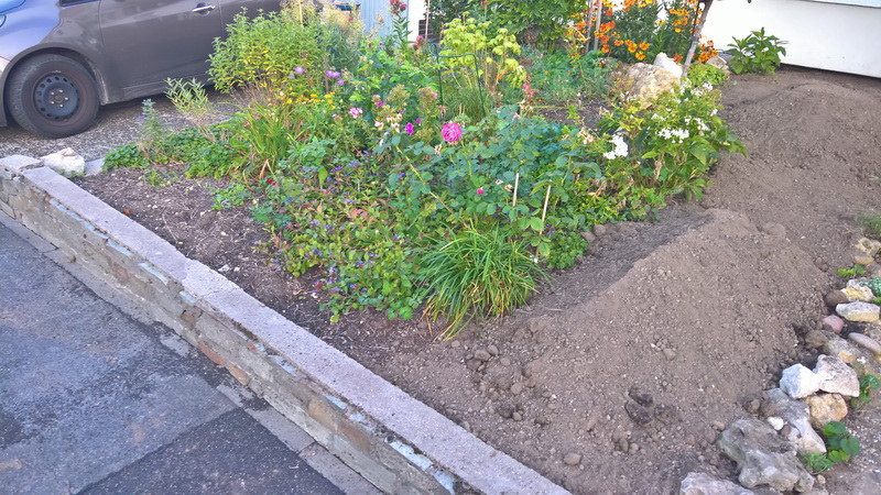 Der Vorgarten hat den Angriff durch die Gas-Leger gut überstanden. Leider hat mir mein frisch gepflanzter Lavendel gerade gezeigt, dass ich von 9 Pflanzen fünf falsche geliefert bekommen habe. Da sind die Blüten weiß anstatt schön dunkel blau. Muss wieder raus *seufzt* Die weißen werden mir zu groß da vorn.