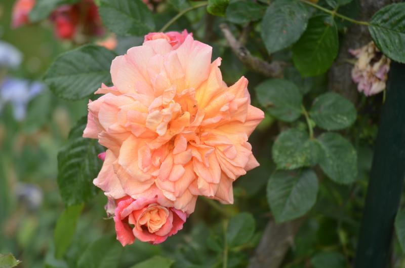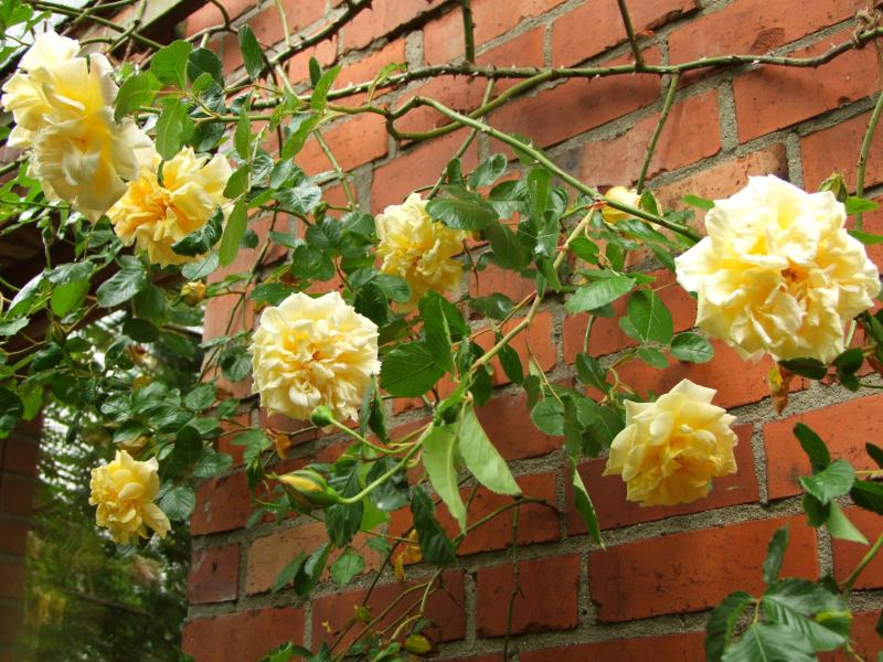 Wenn da nicht noch ein völlig vergilbtes Schild dran gewesen wäre, hätte ich auch nicht gewusst wie sie heißt. Nun hatte ich im Netz nach Informationen gesucht und immer die Angabe Strauch- bzw. Beetrose gefunden. Meist mit Höhenangaben von um die 80cm. Das kam mir schon immer komisch vor, da sie jetzt schon auf 1,50m ist :o.