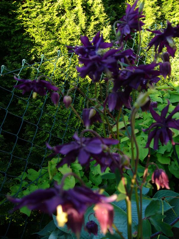 etwas flatterhaft, die Farbe ist ohne Zutun einer blauen Akelei aus zwei rosa barlow sorten über die Jahre entstanden, in der kleinen Ecke ist die mehrheit jetzt immer so dunkel, gefällt mir besser als die ursprungssorten