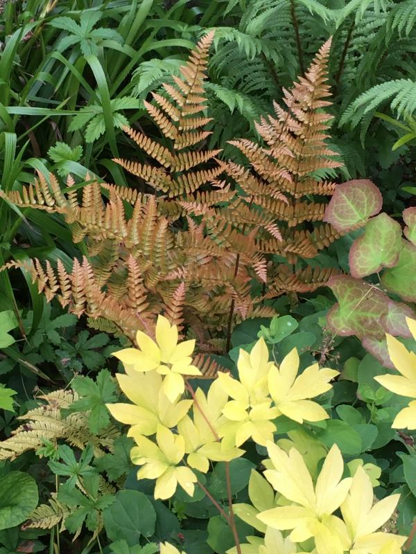 Dryopteris lepidopoda war grad auffällig mit dem Gelb daneben.