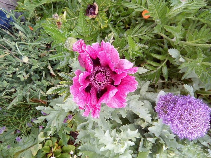 Der Schlängelstängelmohn wollte hier nicht. (*weint ein bisschen*). Heute sah ich in einem Strauß einen Mohn mit kurzen Fransen, leuchtend rot, und innen mit schwarzen Flecken, sehr imposant. Foto kommt später noch.