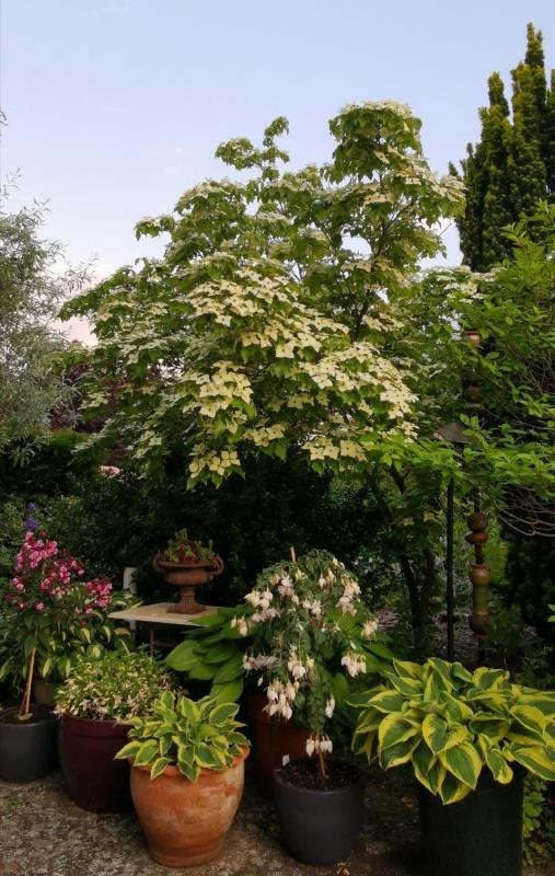 Wahrscheinlich von allem und die dickere Maria ;) lag halt nur auf der Mauer und war nicht richtig befestigt. Die schlankere Lisa konnte oben bleiben, die ist befestigt am Pfosten des Daches. Die untenliegende Maria habe ich aber ganz entfernt, sie lag auf anderen Pflanzen, konnte nicht länger so bleiben. Mein Mann meinte, ich hätte da ja „schön“ Tabula rasa gemacht, aber so schlimm wie bei Mata Hari ist es nicht. ( Ich sollte sie besser jedes Jahr nach der Blüte schneiden...Ich habe kein Foto nach dem Schnitt gemacht.)