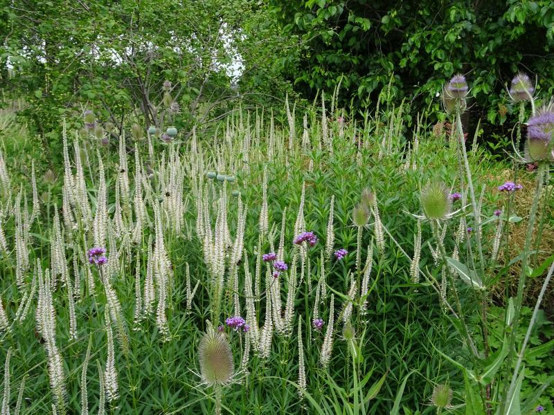 Beliebt bei Hummeln: Veronicastrum virginicum 'Albo-roseum' (steht hier seit etwa 20 Jahre und versamt sich auch moderat)