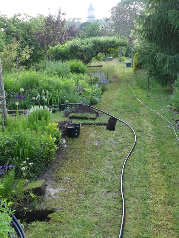 Die Gräben von Hausgeists GG sind an Akkuratheit ja wirklich nicht mehr zu überbieten, sind die per Laser ausgeschnitten? ;) Hier wäre das in der Form auch völlig unmöglich, selbst wenn der Boden nicht zu nass und nicht zu trocken wäre. Eigentlich müsste man ja gleich noch Stromkabel und Leerrohre 'reinlegen, dann lohnt sich die Buddelei gleich mehrfach.