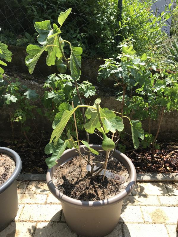 Die Feigen sehen dieses Jahr gut aus. Sie haben schon eine gute Größe, jetzt müssen sie nur noch ausreifen und bitte nicht abfallen wie der Großteil nach dem nassen Mai letztes Jahr.