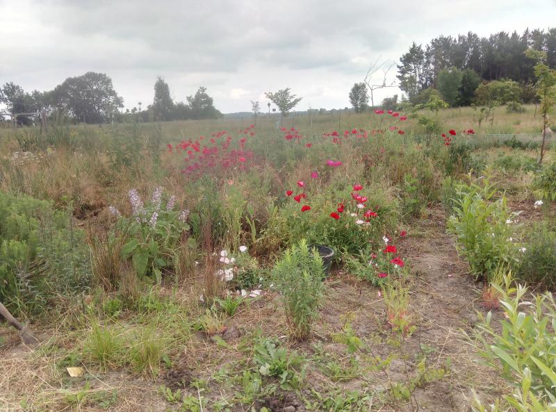 Vor zwei Jahren noch Schafweide wurde ein neuer Gartenteil erschlossen. Der GG wünschte zum runden Geburtstag einen Park, , zumindest im Kleinformat. Angeregt durch für Kunden entworfene Präriebeete wurde eine Hälfte der Fläche dahingehend bepflanzt. Einige "Altlasten" in Form von Magnolien habe ich gelassen, ansonsten ist alles neu. Natürlich leidet das Projekt unter dem Witterungsverlauf und Giessen geht hier nur händisch. Trotzdem ist mittlerweile die Absicht erkennbar :D