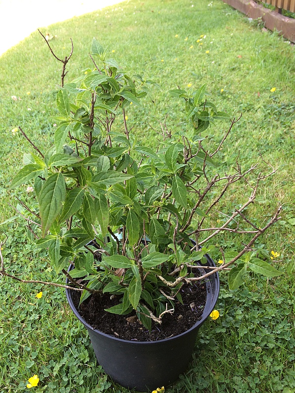Alle anderen Hydrangeas sind mind. 2 mal abgefroren, mickern sowas von rum, sind so abgefroren, dass sie nur noch von unten treiben, und selbst dort sind sie alle jetzt erst ca. 10 cm hoch und haben tw. schrumpelige, verkrüppelte Blätter. Ein jammervoller Anblick. Eine Tellerhortensie hat auch noch weiter oben ausgetrieben, aber der Habitus der Pflanze ist total hin und Blüten wird es nicht geben.