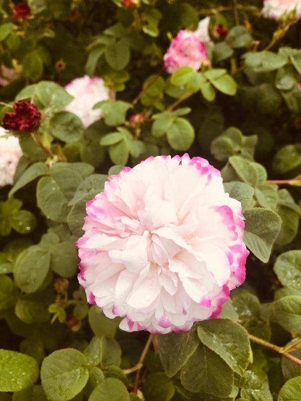 Zweimal die Lykkefund in der Vogelbeere. Die Balken unten im Bild sind übrigens der obere Abschluss eines Pergolagerüstes ;D das trägt Felicite et Perpetue, die blüht aber noch nicht.