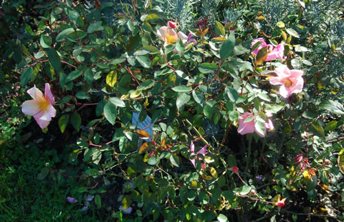 Die restlichen Rosenfamilien waren nicht so reichhaltig vertreten. Vieles hat auch nicht geblüht.In einem Beet war die erste Teehybride La France, daneben die züchterisch wichtige TH Lady Mary Fitzwilliam. Geblüht hat aber nur Mme Caroline Testout