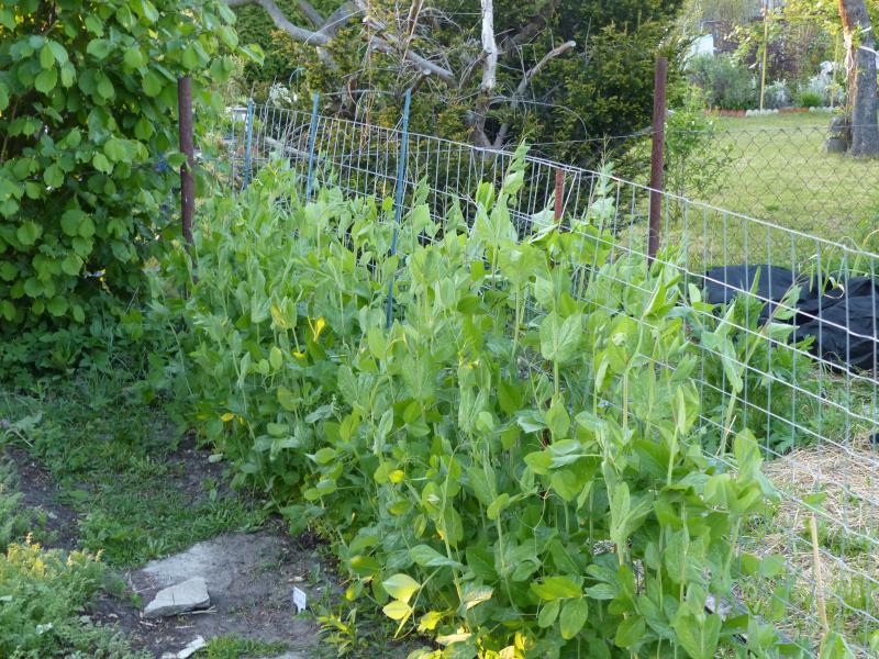 Leider muss ich mittlerweile sagen, dass meine Erbsen/Zuckerschoten nicht so toll geworden sind, wie ich es erwartet hätte. Der Ertrag war sehr gering, v.a. Naschgemüse für die Kinder. Trotz regelmäßigem Gießen sind die Pflanzen zum Teil rasch vertrocknet, so dass Schoten an den Pflanzen mit vertrocknet sind. Es gibt einige Maulwurfsgrillengänge an dem Beet, die habe ich unter Verdacht. Gut, die Nachkultur ist schon aufgegangen, verschiedene Radicchio-Sorten... hoffentlich schmecken die den Maulwurfsgrillen nicht so...