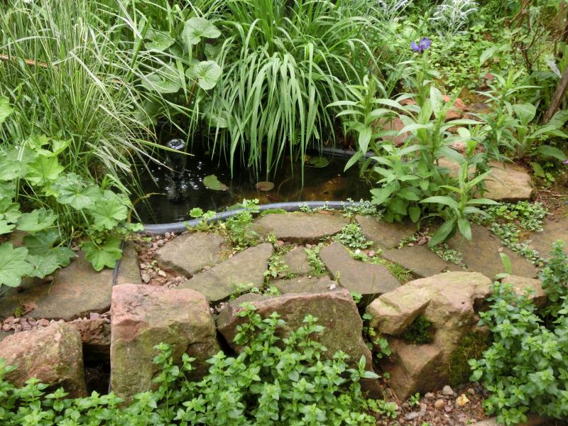 Der Terrassentümpel ;D, wir hatten so eine Kunstoffschale geschenkt bekommen und wollten sie nicht wegschmeissen. Molche, Kröten und Libellen finden es gut und es macht Spaß ihnen zuzuschauen. Ausserdem beliebte Hundetrinkstelle.