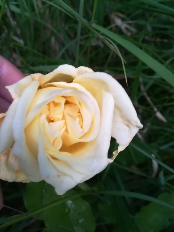während ich das zusammenspiel von mme trifle und mme de watteville farblich geniesse, leider aber nicht die verregnete fleckige blüte letzterer. irgendwie bekommt ihr das feuchte wetter nicht. :P